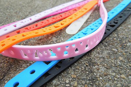 液態硅膠手環具有各種熒光、夜光、色澤多樣的硅橡膠手鏈,柔軟不變形,無毒,耐磨不開裂,耐高溫,壽命長,不刺激皮膚,時尚等特點。除了裝飾性的作用外,還具有醫療、保健、驅蚊的作用。