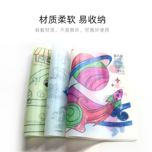 硅膠涂鴉畫主要采用兒童教育方式提升兒童動手能力,以及親子教育知識學習等效果,培養兒童的認知以及專注力以及藝術創造能力等,產品主要采用環保硅膠片結合轉印印刷底色方式提供一定的表面圖案知識,經過水性水彩筆涂鴉達到創作的效果!