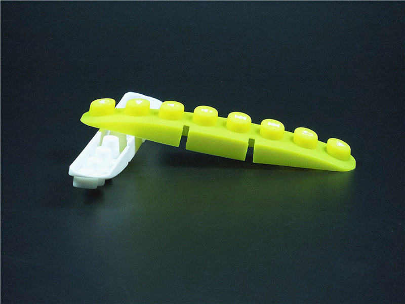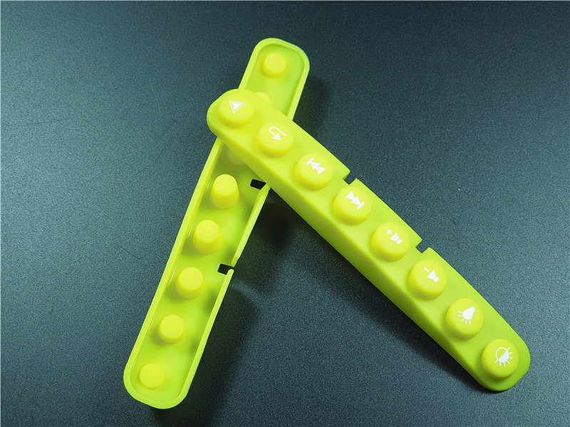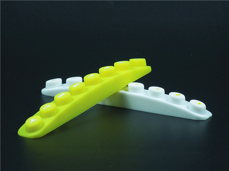 此款硅膠按鍵采用淡黃色色母調制,黃色色母加上半透明的硅膠原料配合硫化劑的添加是通過在里面加入對應顏色比例的顏色色膏混煉,得到相應需要的顏色,可自定義顏色定制加工生產,原材料采用食品級環保硅膠、質地柔軟,可塑性強。低碳環保,無毒無味,柔軟、防滑、防震、防滲水、隔熱、不易老化、不褪色、易清洗。